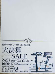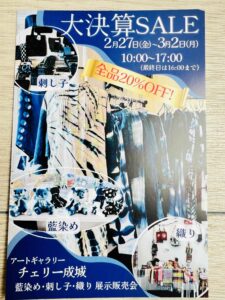 藍染・刺子・織など選りすぐりの自信作をこの時期限り全品20%OFFにて販売。